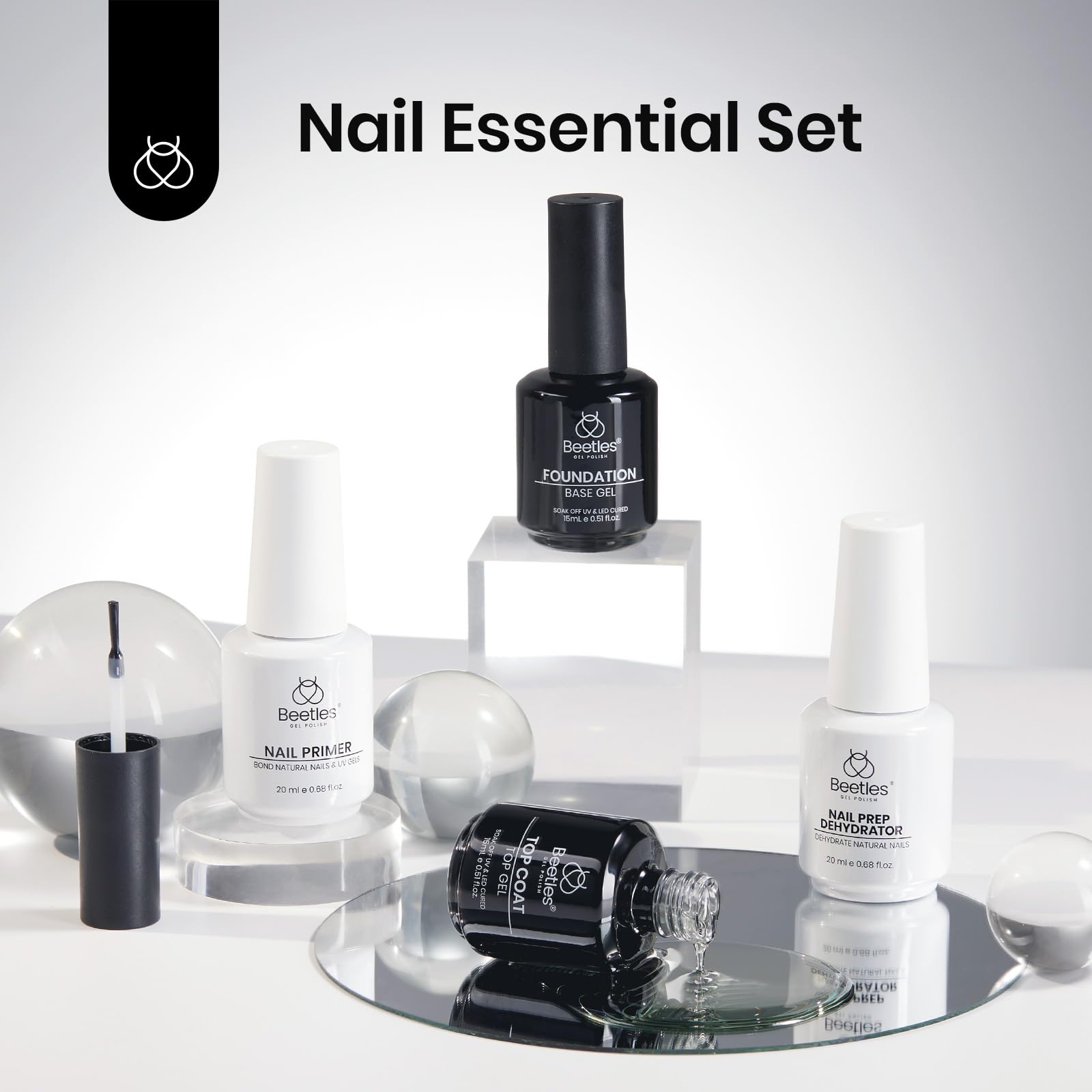 Beetles 2 Pcs 15ml No Wipe Gel Top Coat and Base Coat Set - Shine Finish and Long Lasting, Soak Off LED Nail Lamp Gel Base Top Coat Finish Nail Art Design Manicure
