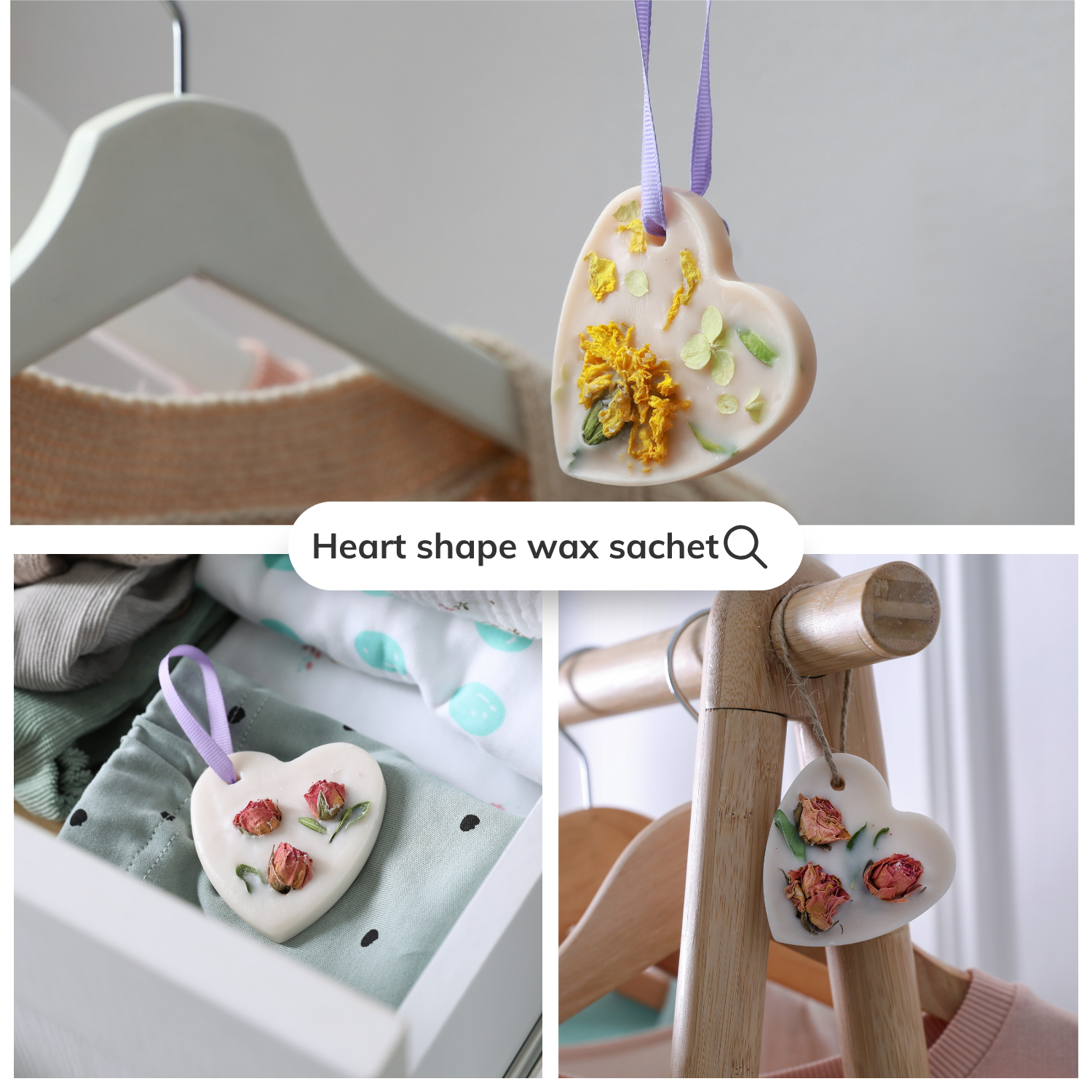 Our wax sachet is Available in 6 shapes: Heart, Hexagon, Oval, Rectangle, Ring, and Round.