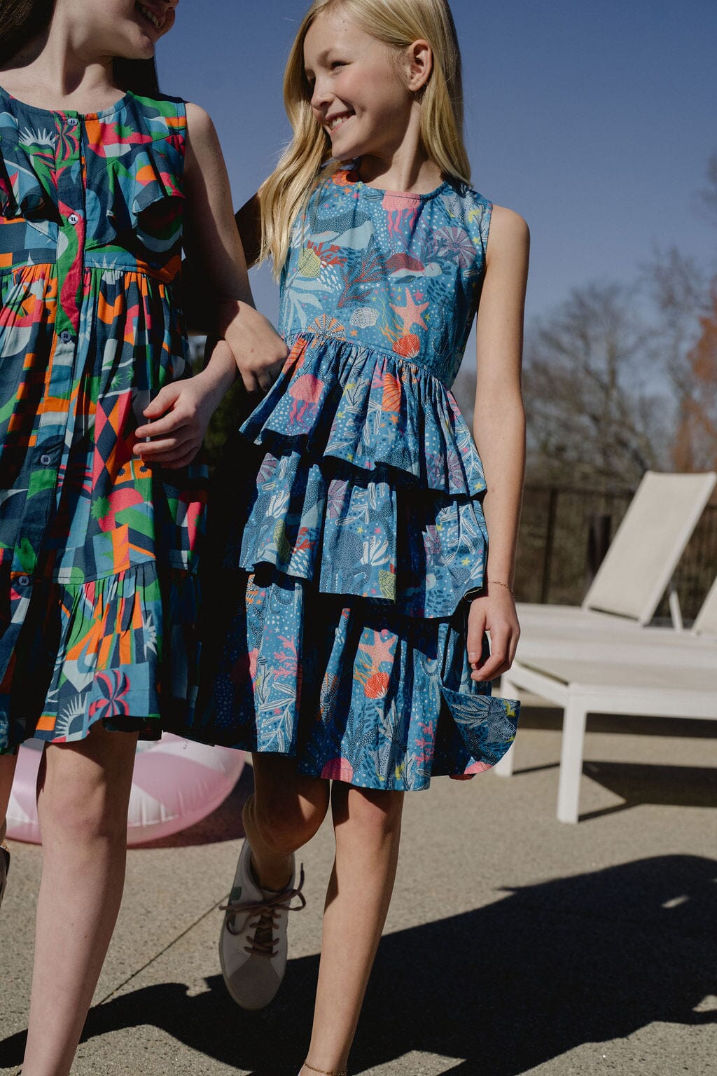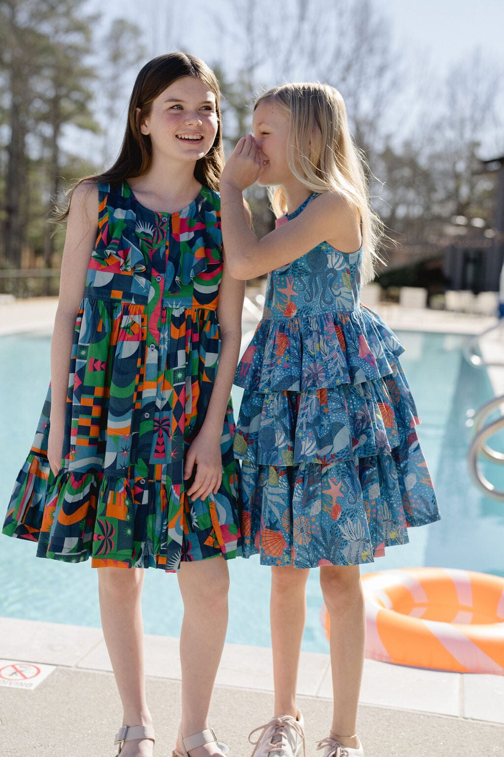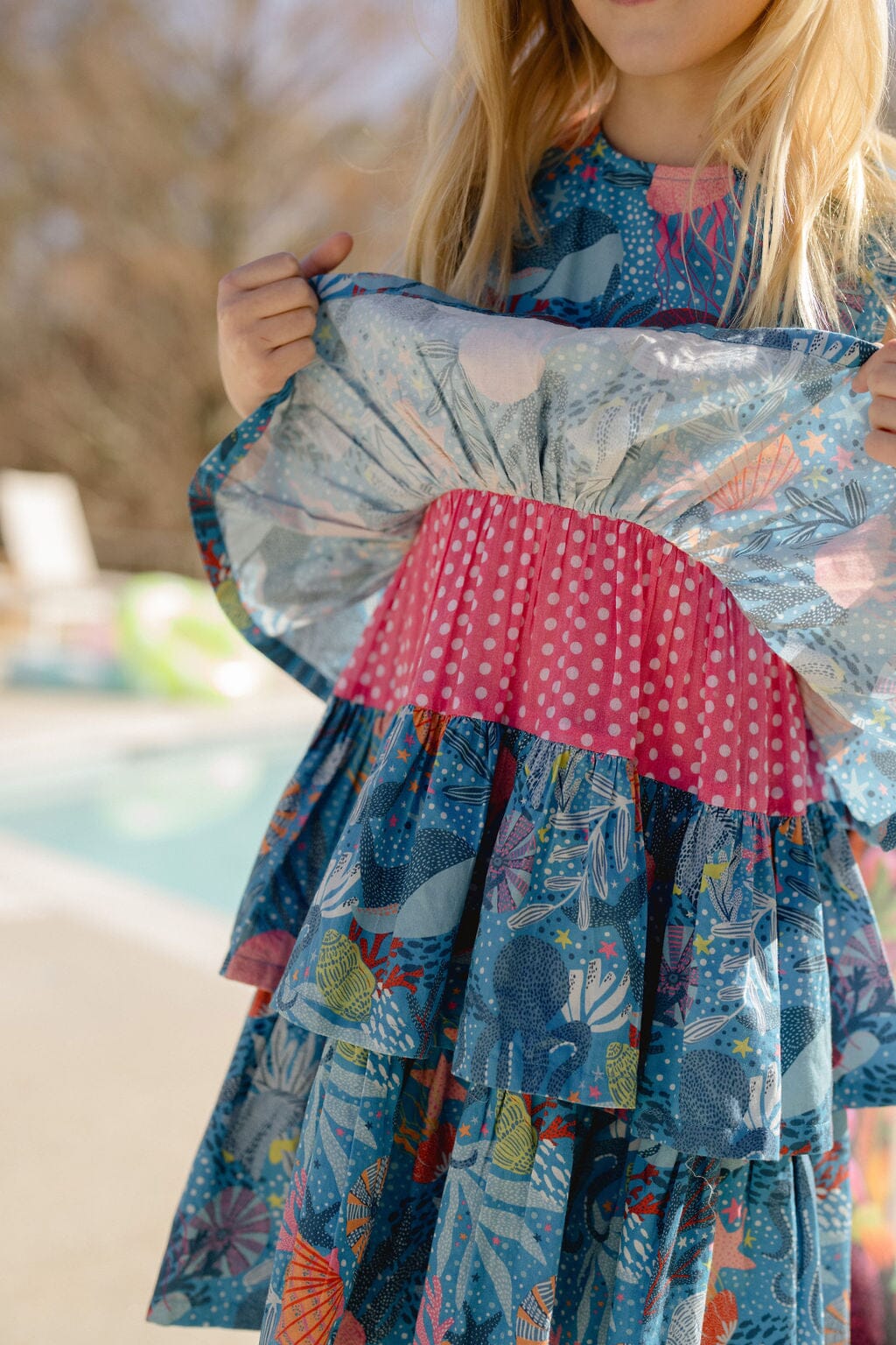 Dive into whimsical style with our best-selling Goldie Dress, now swimming in a delightful sea blue ocean print! This underwater adventure features charming sea creatures, playful layers of ruffles, and a beautifully flattering scoop neckline. Make waves wherever you go in this fan-favorite design that's sure to make a splash!