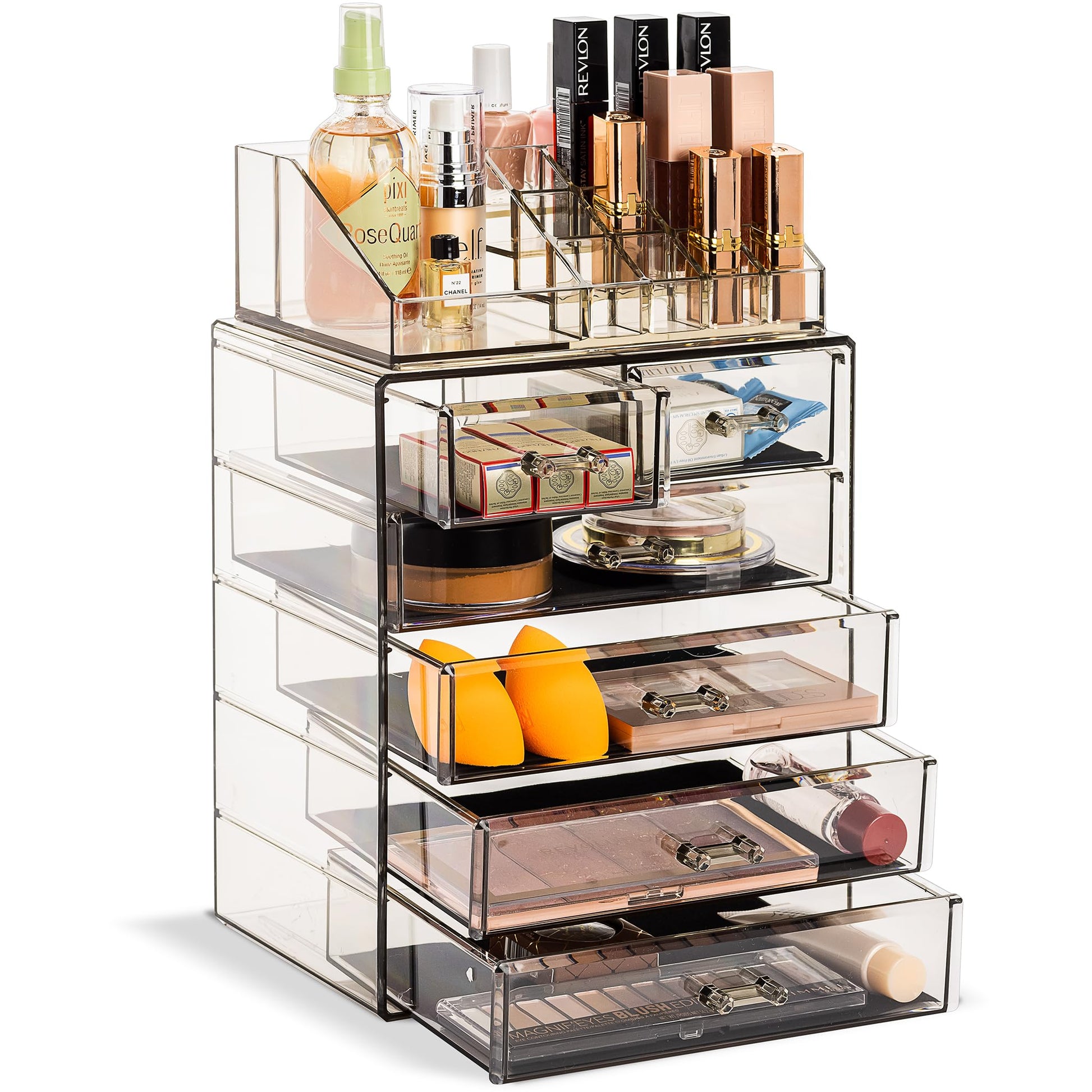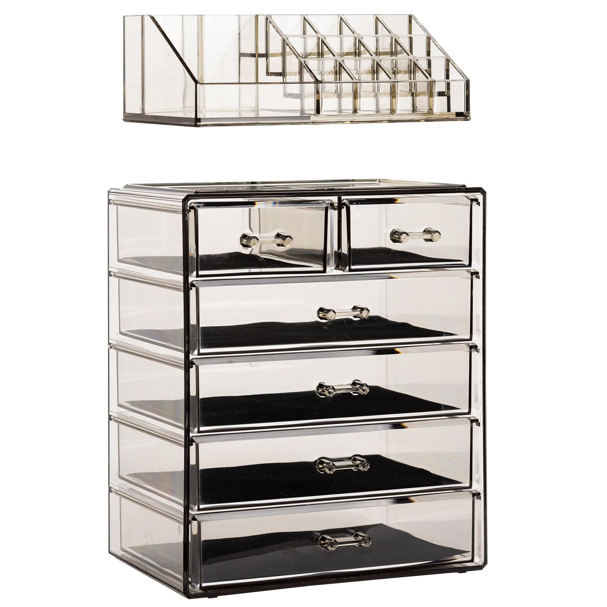 Acrylic Makeup Organizer Set, 7-Drawer Vanity & Countertop Cosmetic Storage with Small & Wide Compartments, Clear Makeup Storage for Brushes, Lipsticks, Jewelry