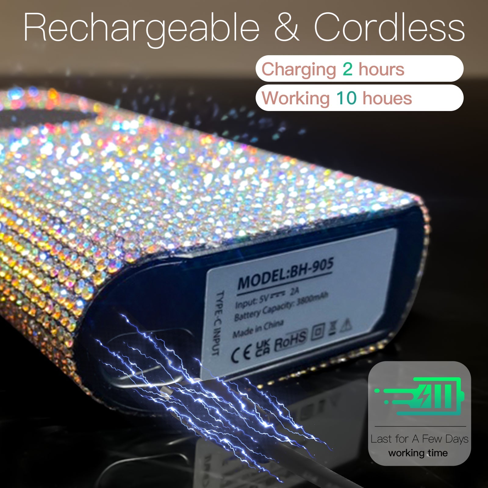 The Wand Bling Nail Drill combines dazzling crystal diamond style with pro-level performance. Featuring a smooth, quiet 35,000 RPM coreless motor, this drill delivers low vibration and precise control—perfect for cuticle work, shaping, and detailed nail art.